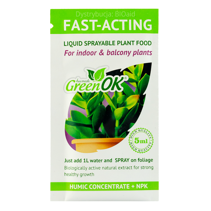 Zawartość saszetki (5 ml) należy rozpuścić w 1 litrach wody, w opryskiwaczu Green OK lub konewce. Wymieszać przed użyciem.